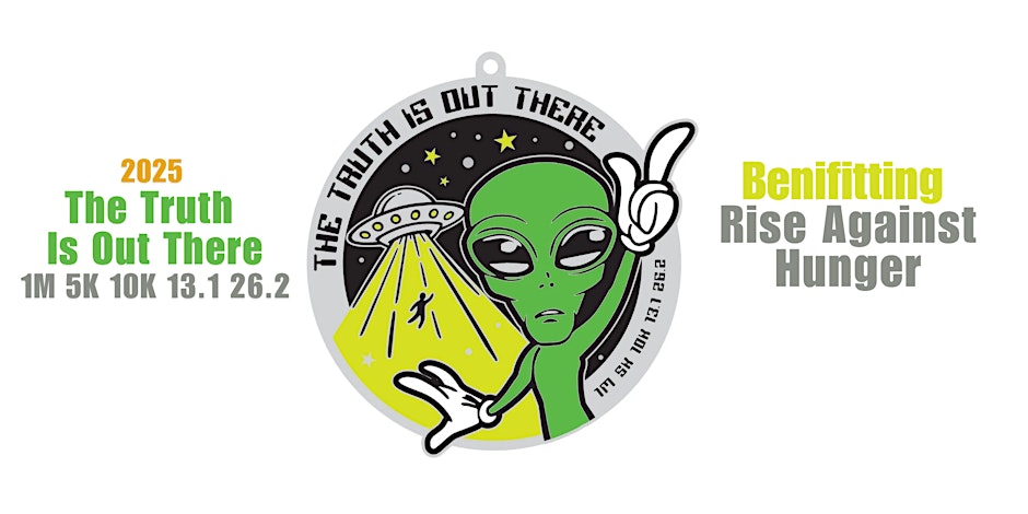 To run to, or from, the UFO’s join our sixth annual The Truth Is Out There 1M 5K 10K 13.1 26.2!