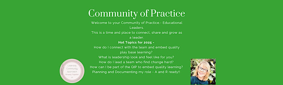 Welcome to your Educational Leader Community of Practice ! This is a time and place for you to connect, share and grow as leader.