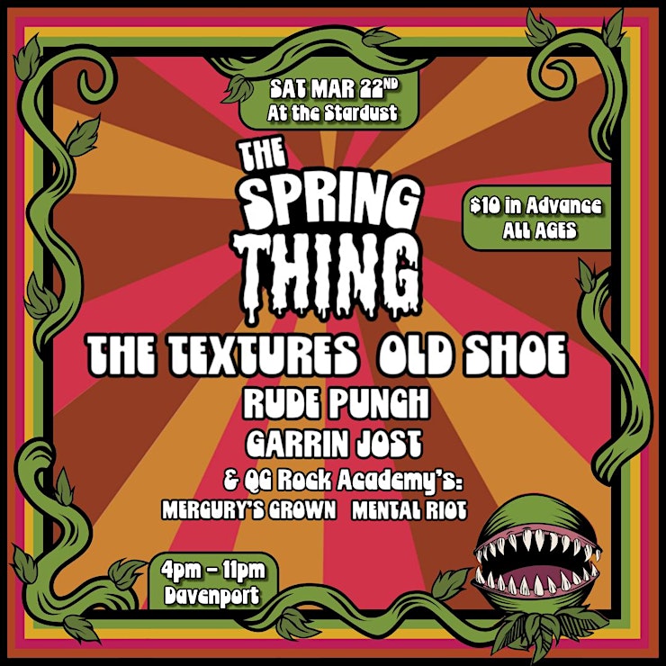 A one-of-a-kind mini music festival celebrating the entrance of spring, hosted by The Textures! Live music, art, vendors, and more!