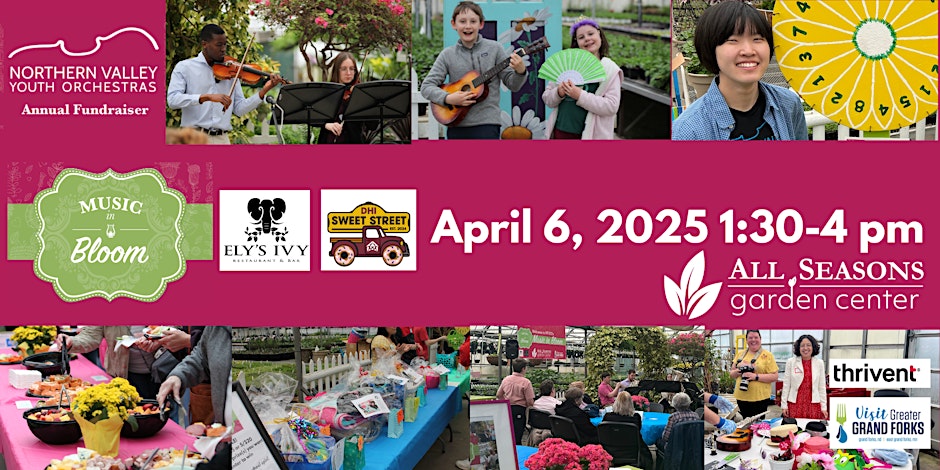 Northern Valley Youth Orchestras' signature fundraiser: Music in Bloom! Vibrant sounds, sights, & tastes of spring in a greenhouse setting