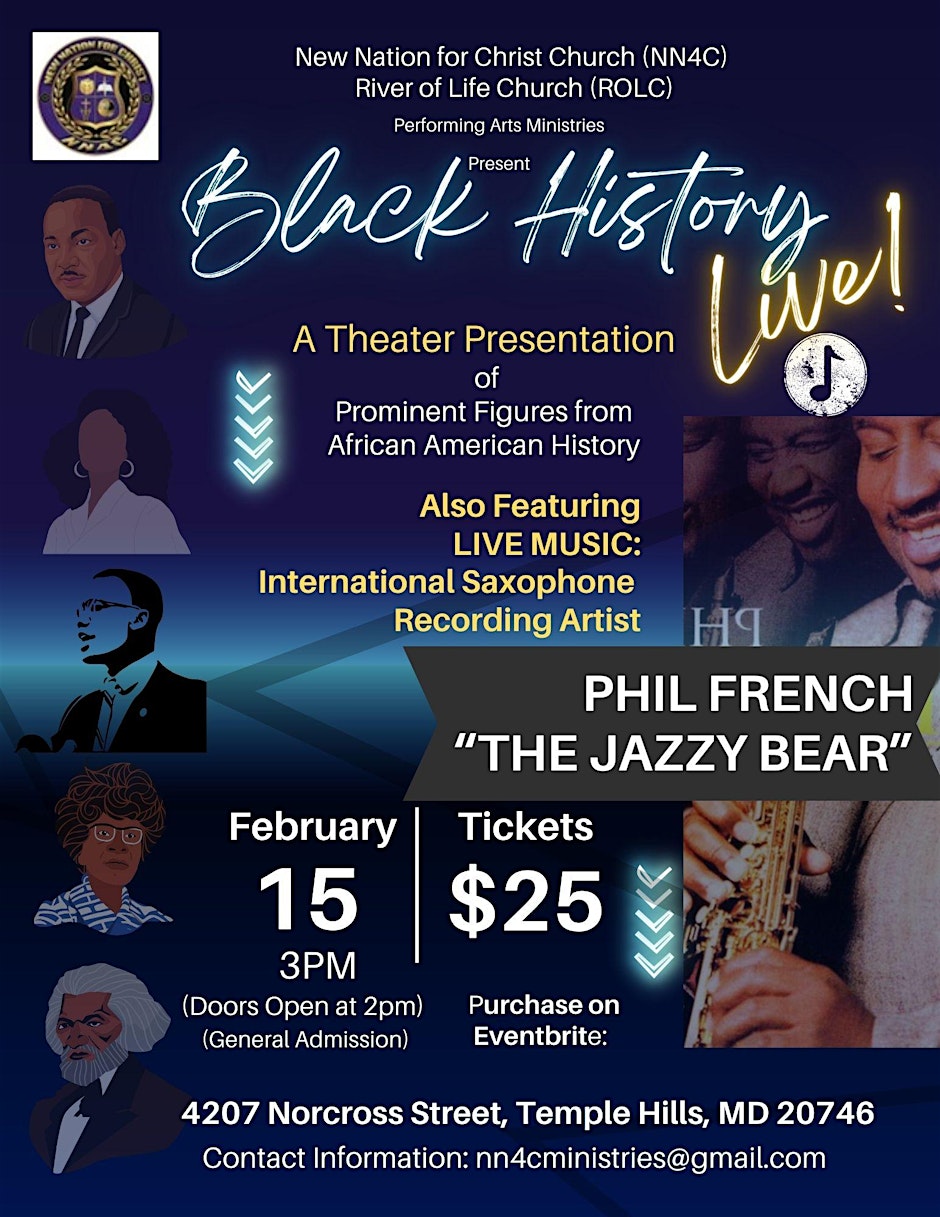 A stage & theater presentation characterizing historic African American leaders as they share their stories and speak to todays generation!