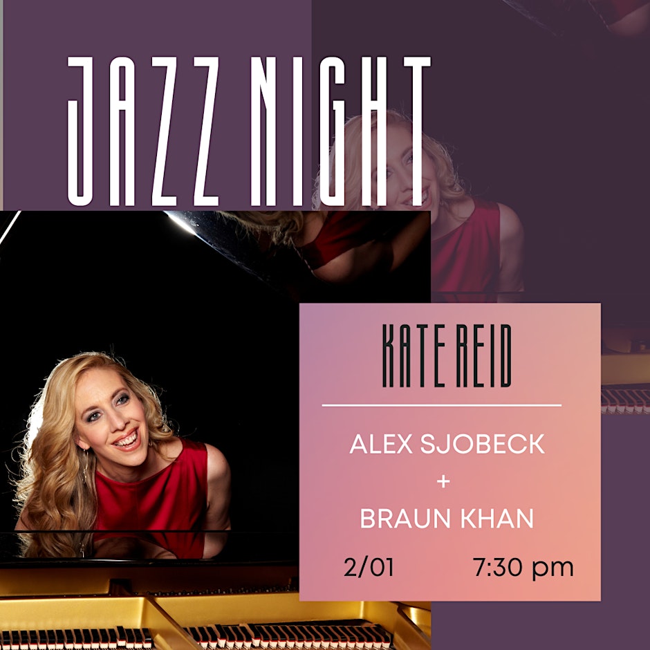 Join us for another night of jazz featuring Kate Reid on Vocals, Alex Sjobeck on piano, and Braun Khan on bass!